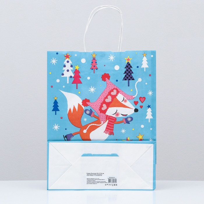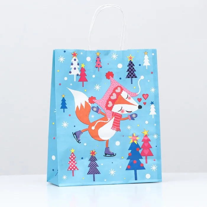 Новогодний подарочный пакет с ярким, красочным рисунком создаст праздничное настроение.