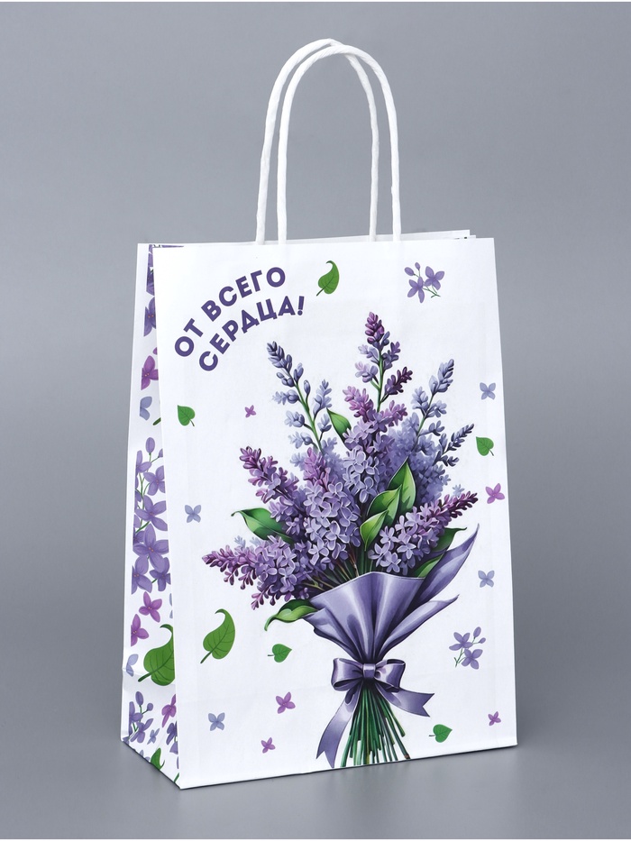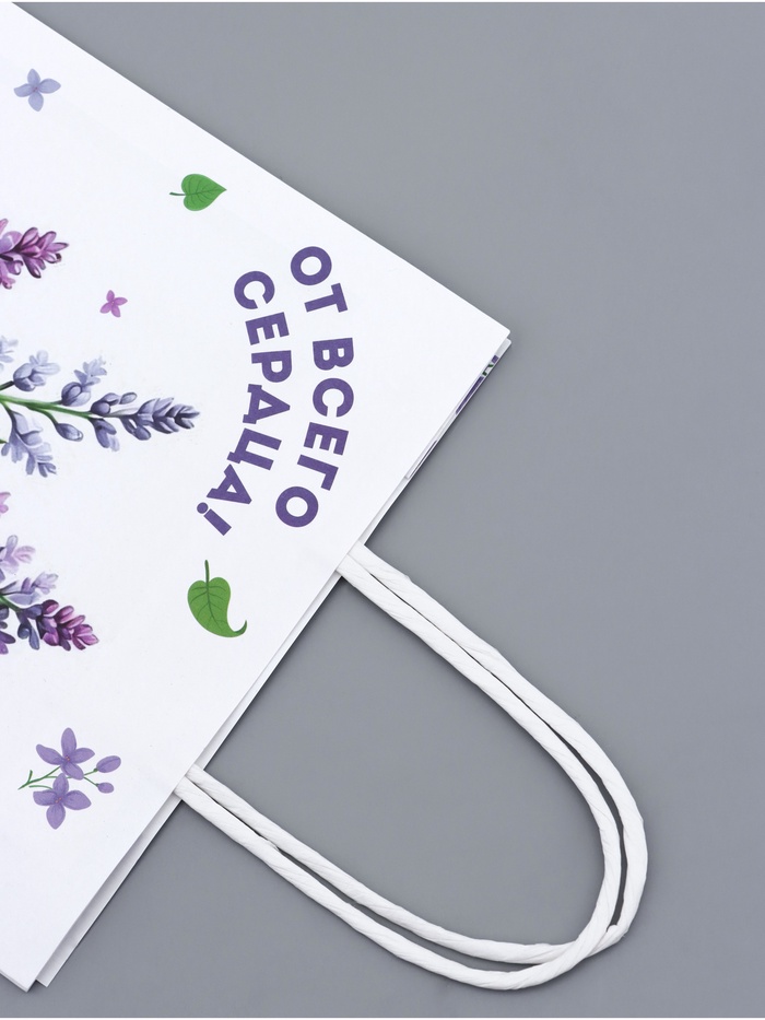 На пакете изображен нежный рисунок сирени в пастельных тонах, который создаст особое настроение и подчеркнёт искренность ваших чувств. Сирень – символ весны, чистоты и любви, что делает этот пакет особенно подходящим для подарков на День матери, День Валентина, свадьбу или любое другое важное событие.