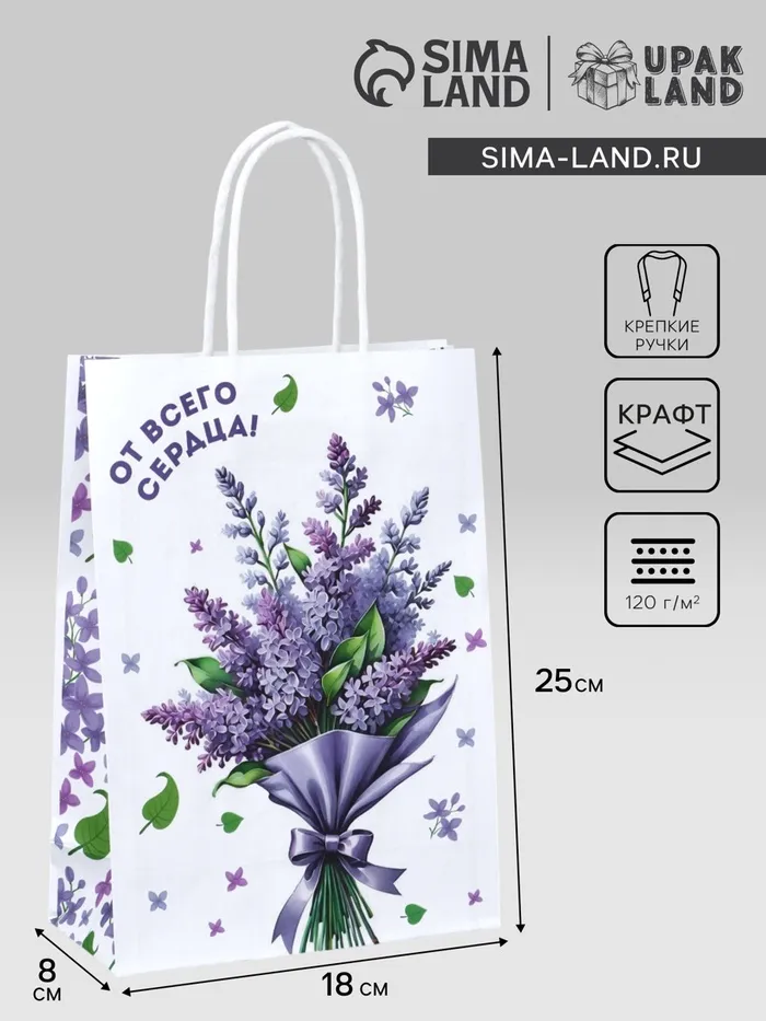 Пакет крафт «От всего сердца» – это идеальный выбор для упаковки подарков на любой праздник! Размер пакета 18 х 8 х 25 см позволяет вместить практически любой подарок, будь то книга, сувенир или косметика.
