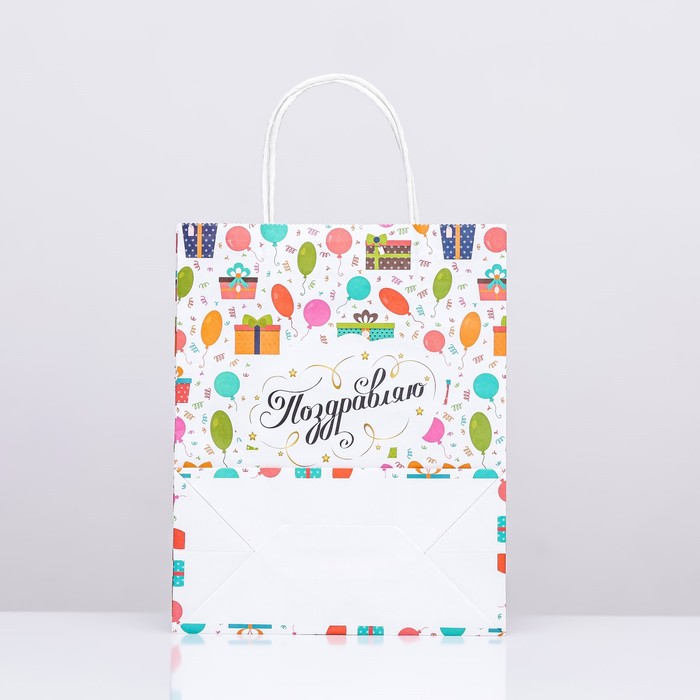 Пакет крафт «Подарки», 22×12×27 см — Характеристики