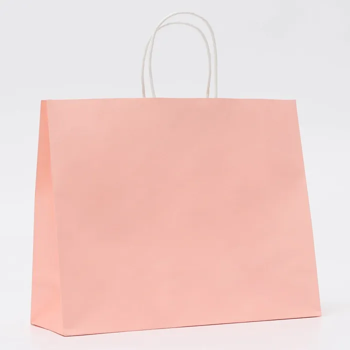Пакет крафт розовый, круглая ручка, 31.5×25×11.5 см, 120 г — Характеристики