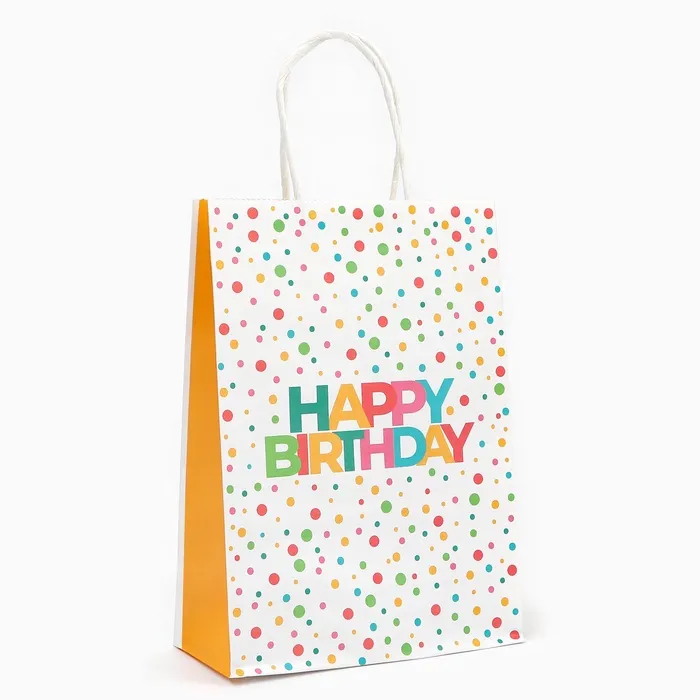 Пакет крафт «С днем рождения!», 18×8×25 см — Характеристики