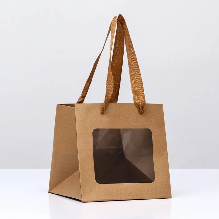 Пакет крафт с квадратным дном и окном размером 15 х 15 х 15 см крафта - это не только стильный и удобный аксессуар, но и отличное дополнение к вашим тортам, десертам и цветам.