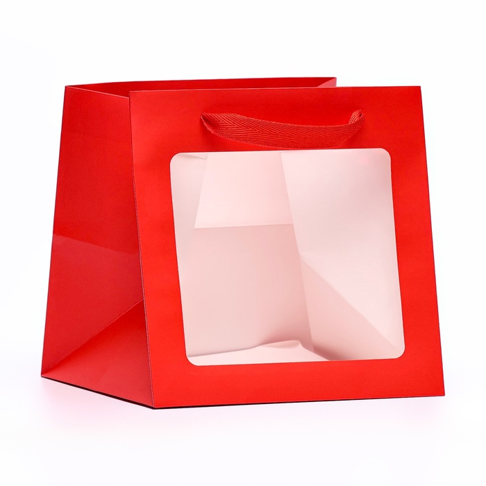 Пакет крафт с квадратным дном и окном, 20×20×20 см, красный — Характеристики