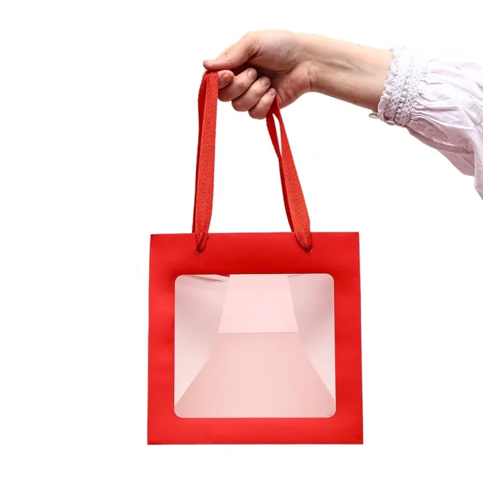 Пакет крафт с квадратным дном и окном, 20×20×20 см, красный — Характеристики