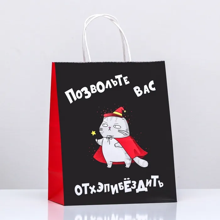 Почему выбирают: Когда хочется избежать шаблонных поздравлений. Такой пакет — уже самостоятельный презент, который запомнится. Просто положите внутрь подарок — дополнительная упаковка не нужна.