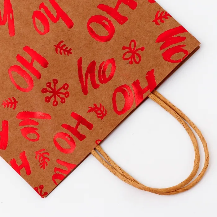Пакет крафт с тиснением, круглая ручка, "Хо - Хо - Хо" 21×27×11 см, 120 г — Характеристики
