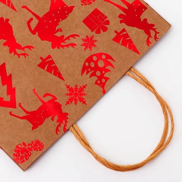 Пакет крафт новогодний 21 х 27 х 11 см - это стильное и функциональное решение для упаковки и транспортировки подарков в преддверии зимних праздников.
