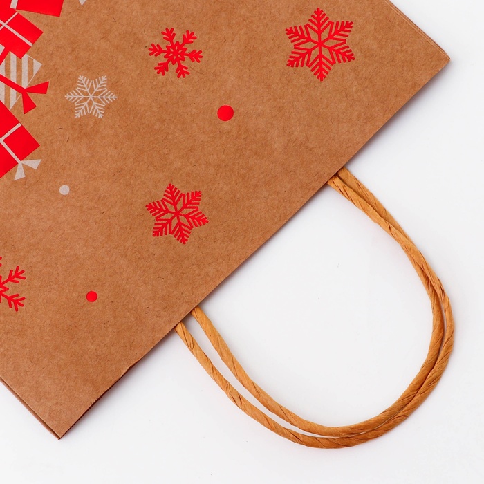 Пакет крафт новогодний 21 х 27 х 11 см - это стильное и функциональное решение для упаковки и транспортировки подарков в преддверии зимних праздников.