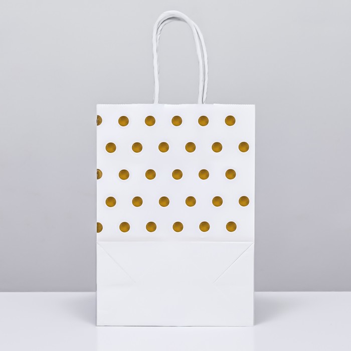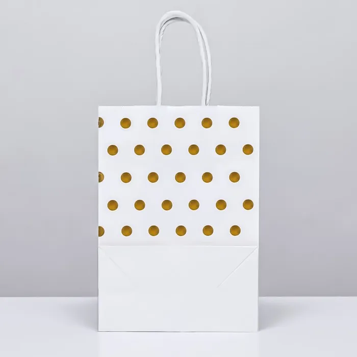 Пакет крафт с золотым тиснением, круглая ручка, белый, 15×21×8 см, 120 г — Характеристики
