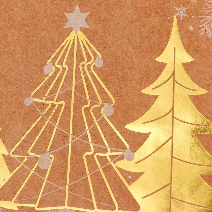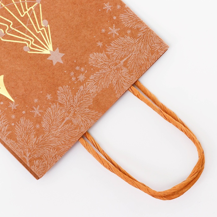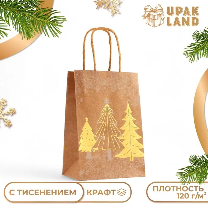 Пакет крафт с золотым тиснением, круглая ручка, "Рожденственский лес" 15 х 21 х 8 см, 120 г