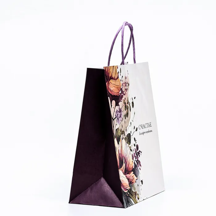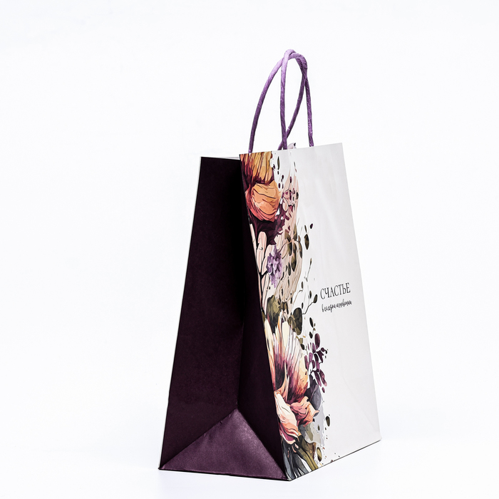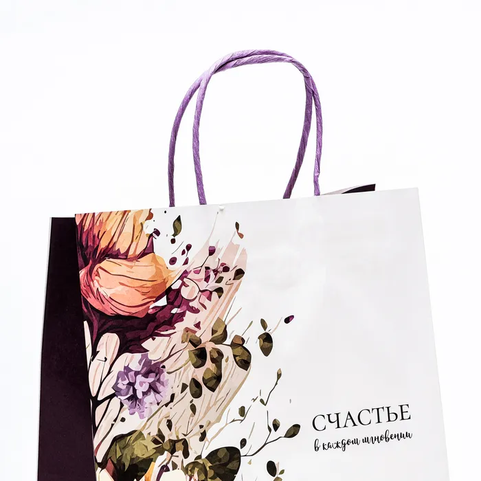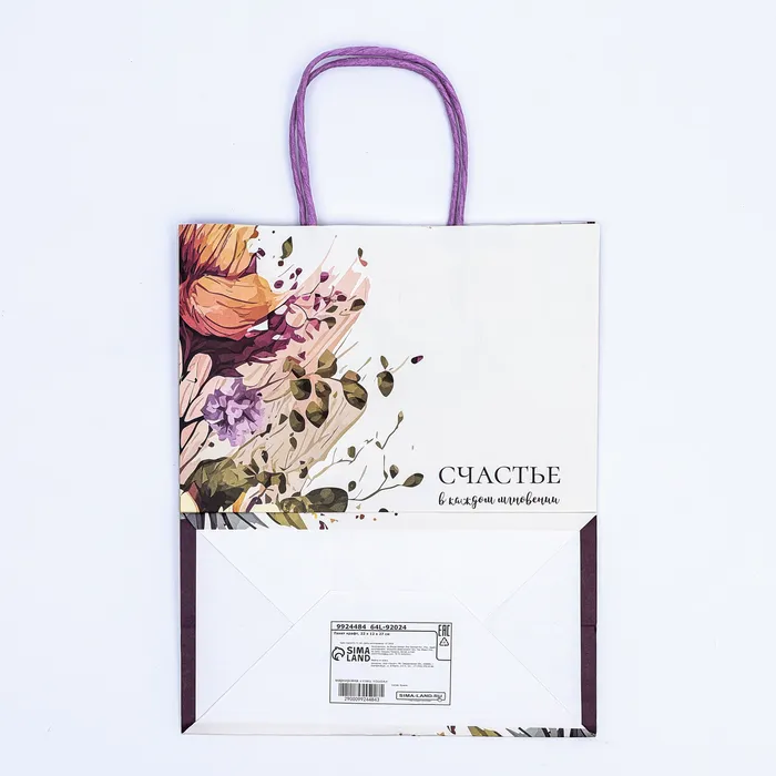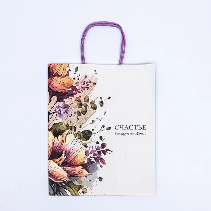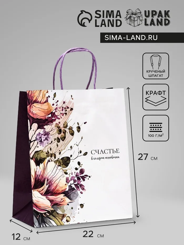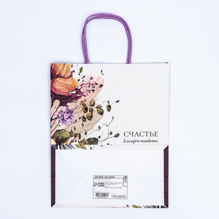 Пакет крафт «Счастье в каждом мнгновении» 22×12×27 см — Характеристики