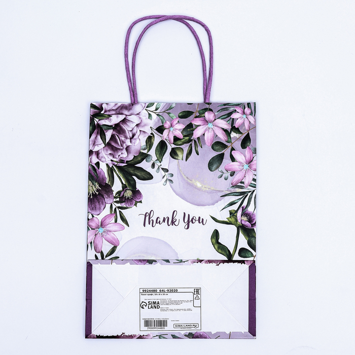 Пакет крафт «Спасибо» 18×8×25 см — Характеристики