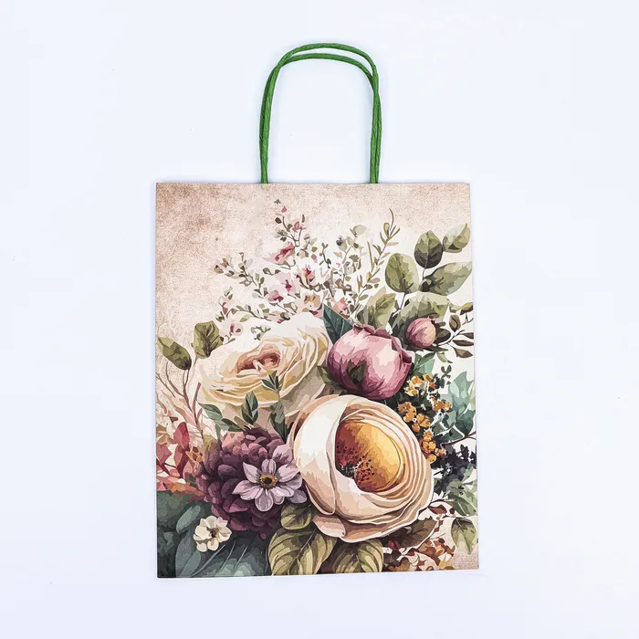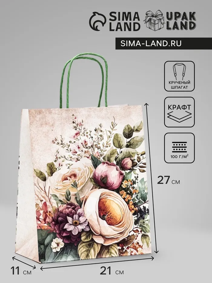 Пакет крафт «Цветы» 21×11×27 см — Характеристики