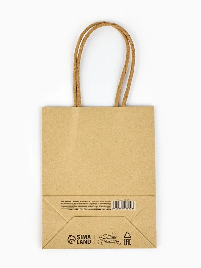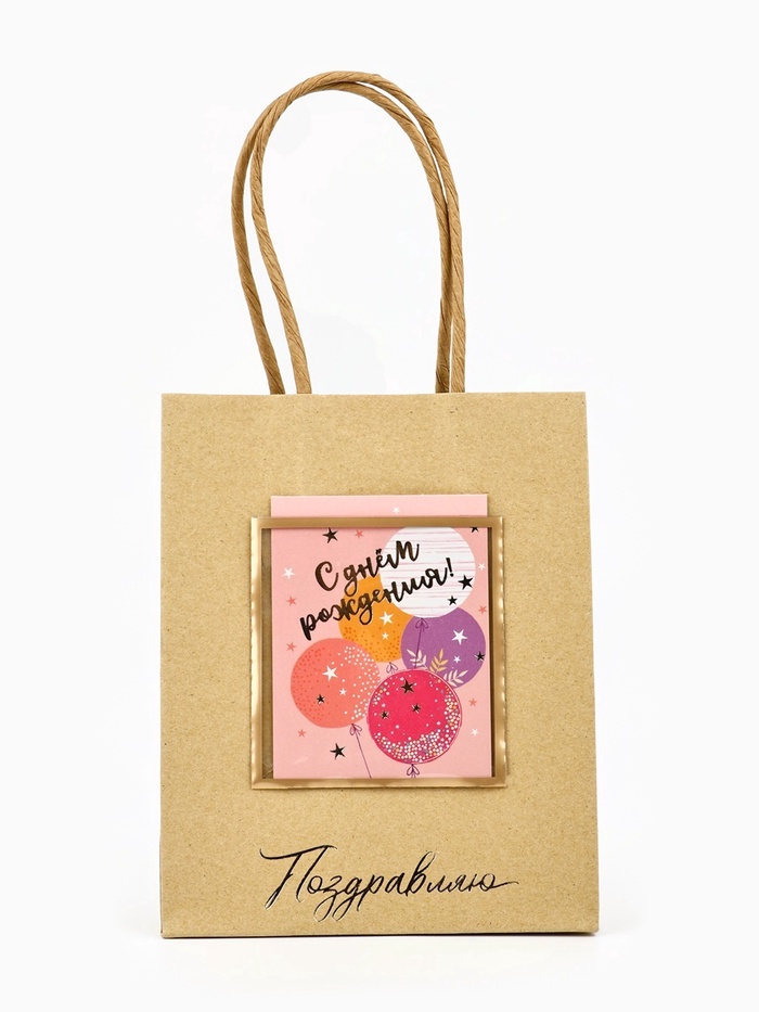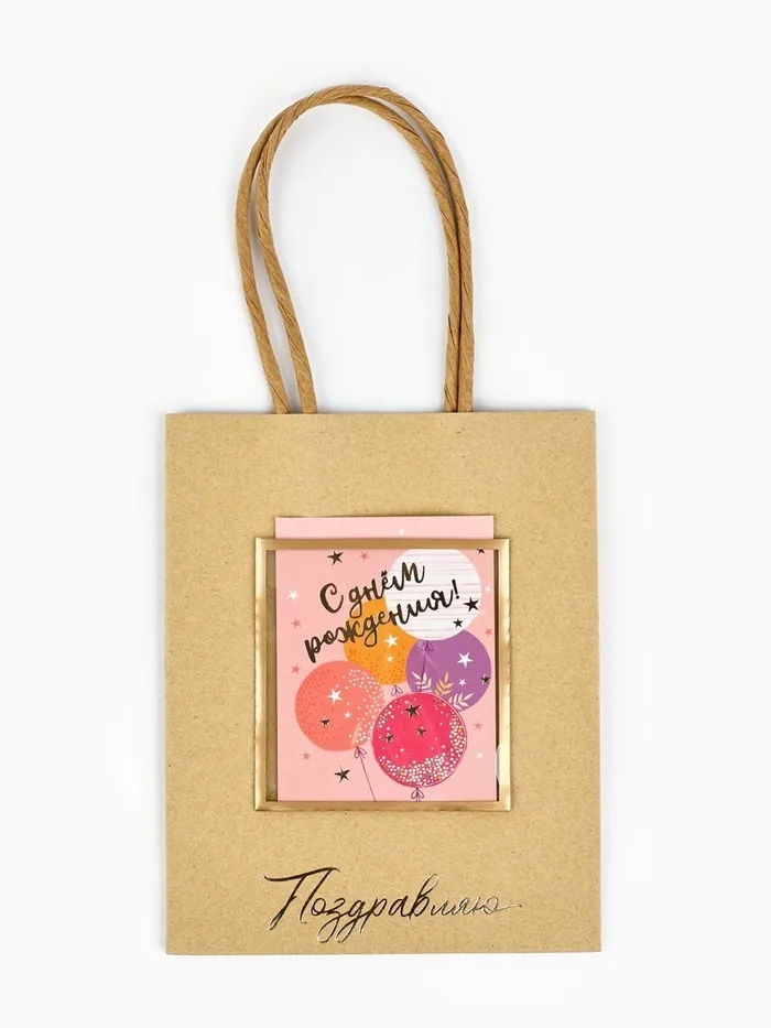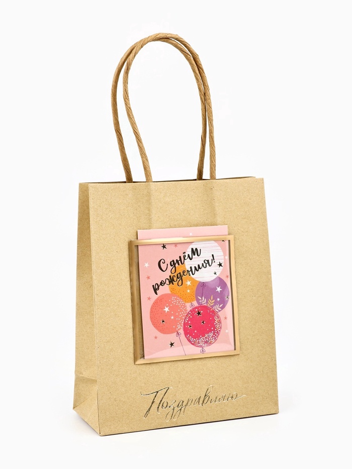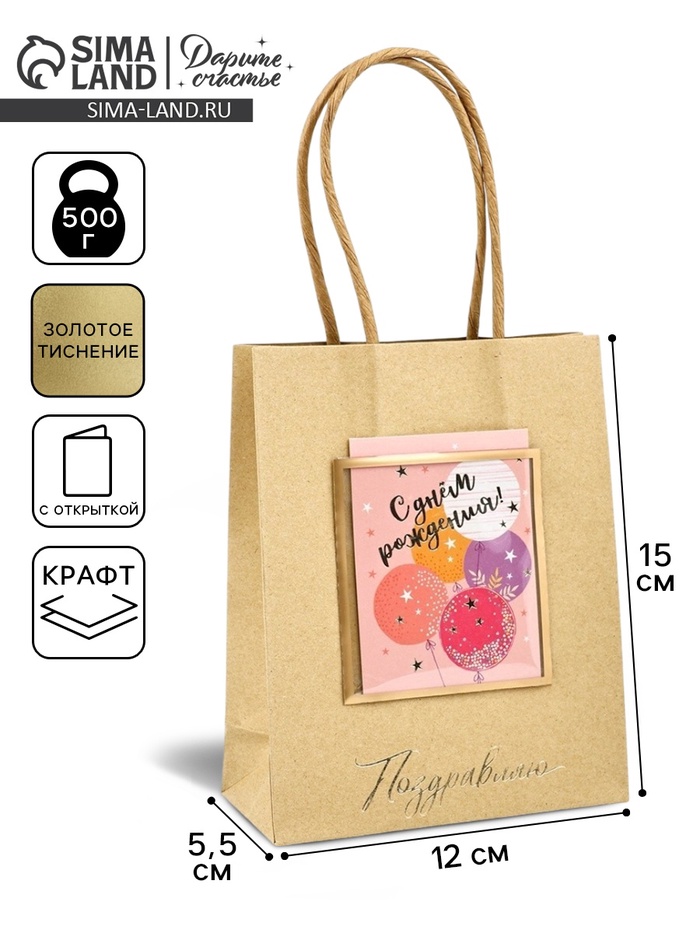 Пакет крафтовый с открыткой «С Днём рождения», S 12 х 5.5 х 15 см — Характеристики