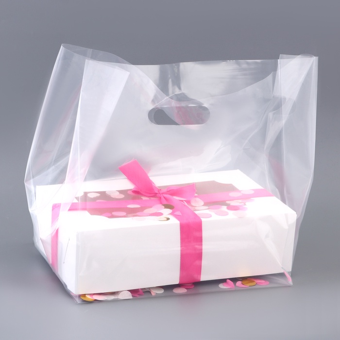 Пакет квадратный полиэтиленовый с вырубной ручкой, упаковка, прозрачный, 23.5×38+22 см ±5% 60 мкм — Характеристики