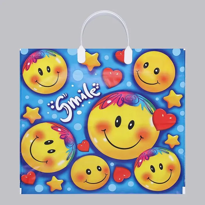 Пакет полиэтиленовый с пластиковой ручкой, благодаря ручкам пакет служит дольше. Прочный и надежный с оригинальным рисунком.
