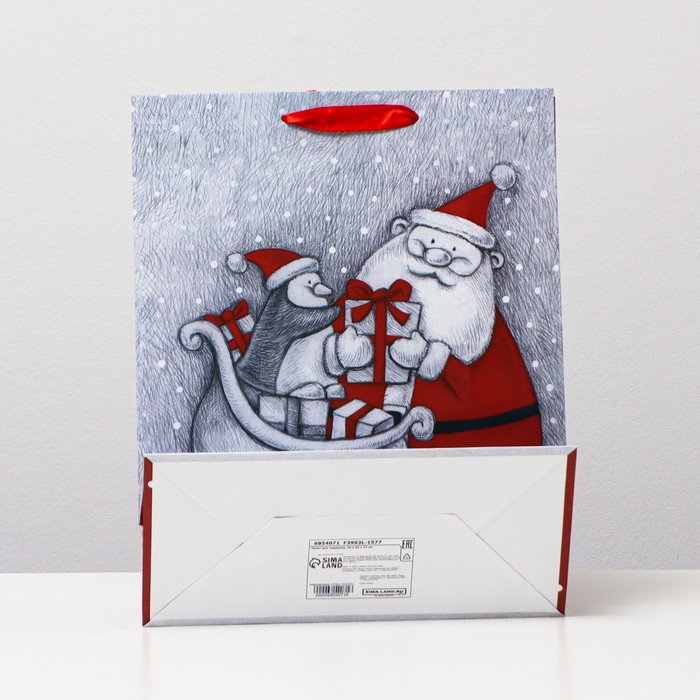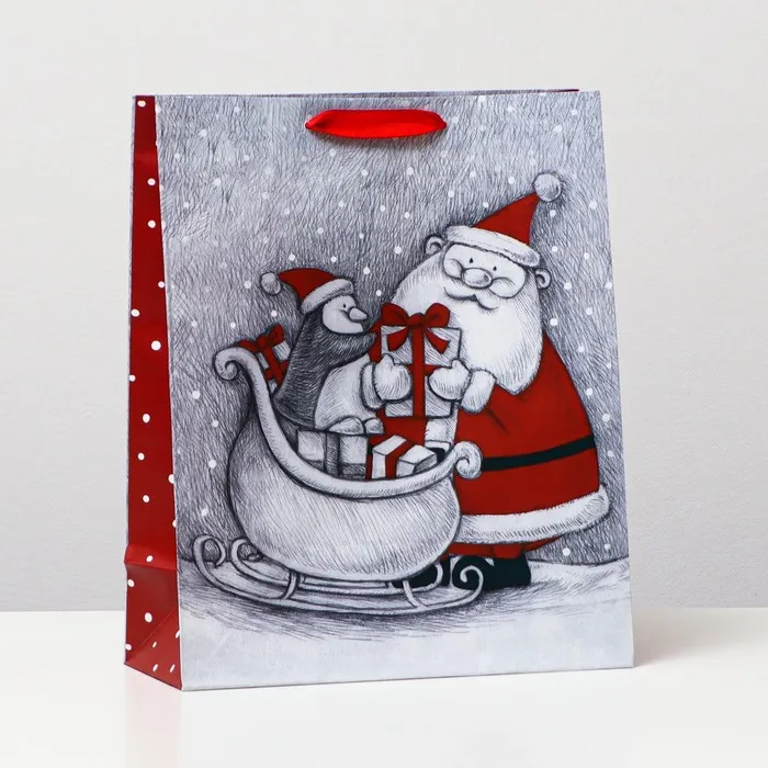 Стильный новогодний пакет с ламинацией используют как упаковку для подарка. Благодаря своему оригинальному дизайну и привлекательному внешнему виду он создаст праздничное настроение получателю и не оставит его равнодушным.