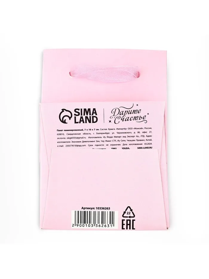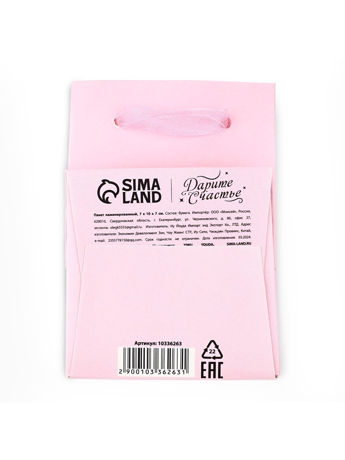 Пакет ламинированный «Для тебя», тиснение, 7 х 10 х 7 см — Характеристики