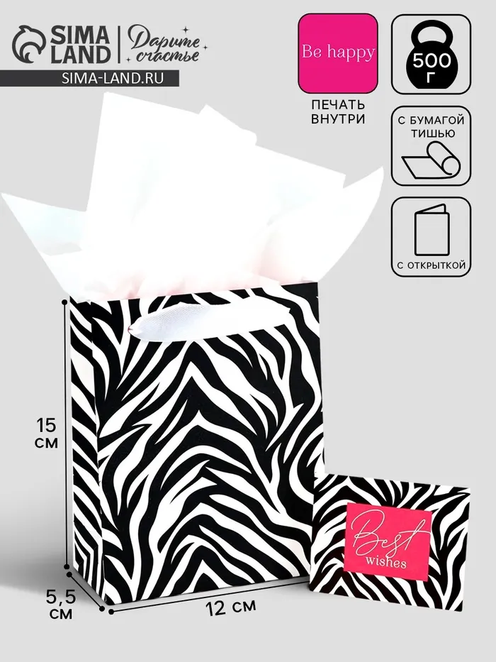 Пакет ламинированный двухсторонний Best wishes, с тишью и открыткой, S, 12 х 15 х 5.5 — Характеристики