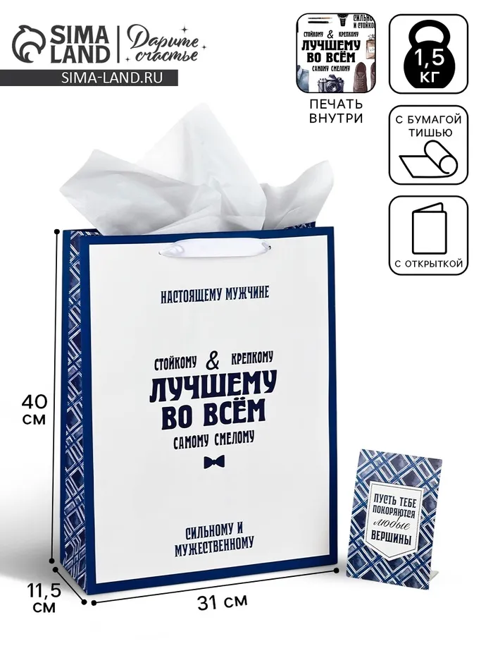 Пакет ламинированный двухсторонний «Лучшему», с тишью и открыткой, L 40 х 31 х 11.5 — Характеристики