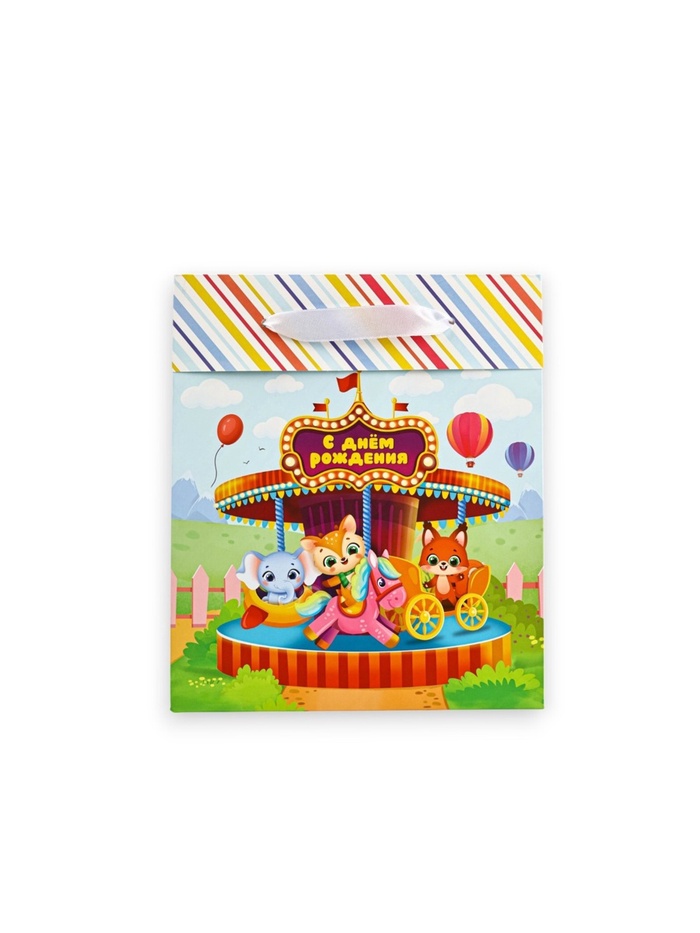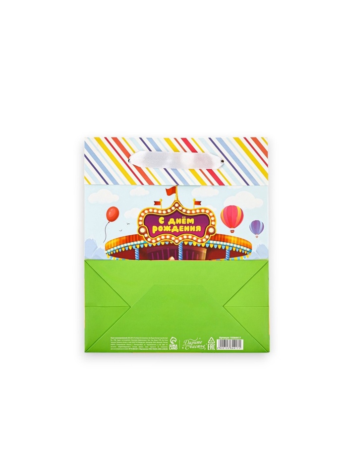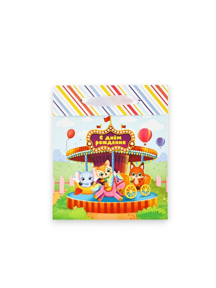 Пакет ламинированный двухсторонний «С Днём рождения», карусель, ML 23 х 27 х 11.5 см — Характеристики