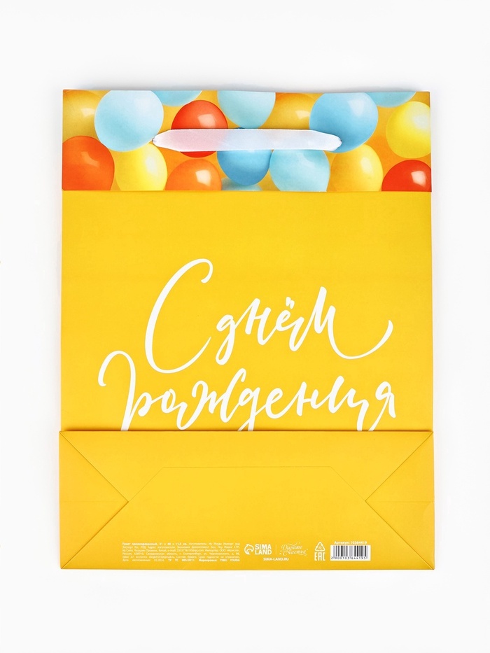 Пакет ламинированный двухсторонний «С днём рождения», L 31 х 40 х 11.5 см — Характеристики