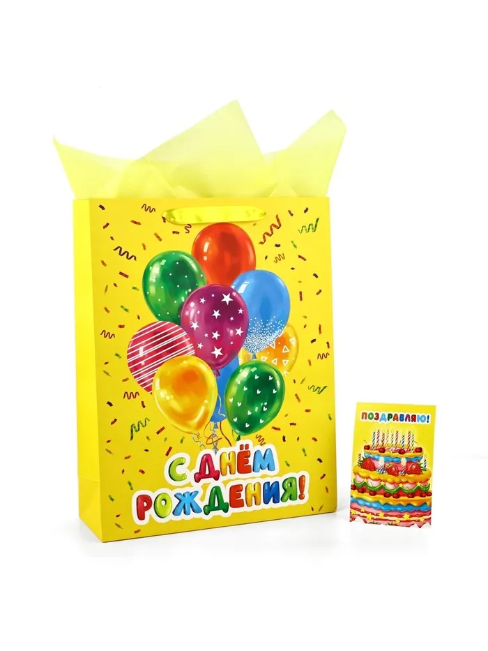 Пакет ламинированный двухсторонний «С Праздником», с тишью и открыткой, L, 40 х 31 х 11.5 — Характеристики