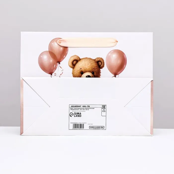 Пакет ламинированный горизонтальный «Медвежонок», 23×18×10 см — Характеристики