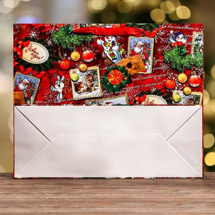 Стильный новогодний пакет с ламинацией используют как упаковку для подарка. Благодаря своему оригинальному дизайну и привлекательному внешнему виду он создаст праздничное настроение получателю и не оставит его равнодушным.