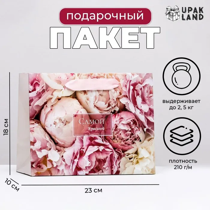 Пакет ламинированный горизонтальный «Цветы для самой красивой», 23×18×10 см — Характеристики