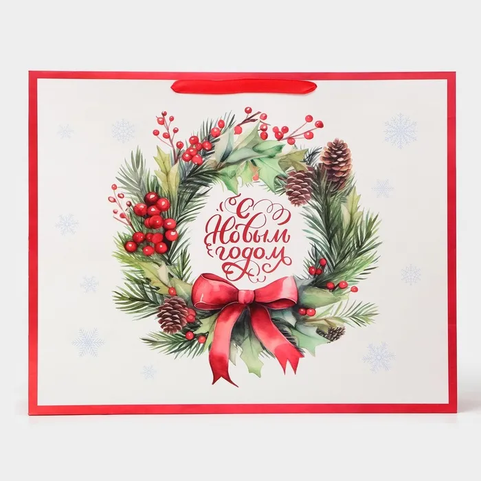 Яркий и красочный дизайн с новогодними мотивами придает пакету праздничный и жизнерадостный вид. Это делает его идеальным выбором для использования в качестве подарочной упаковки на различные зимние праздники, такие как Новый год или Рождество.