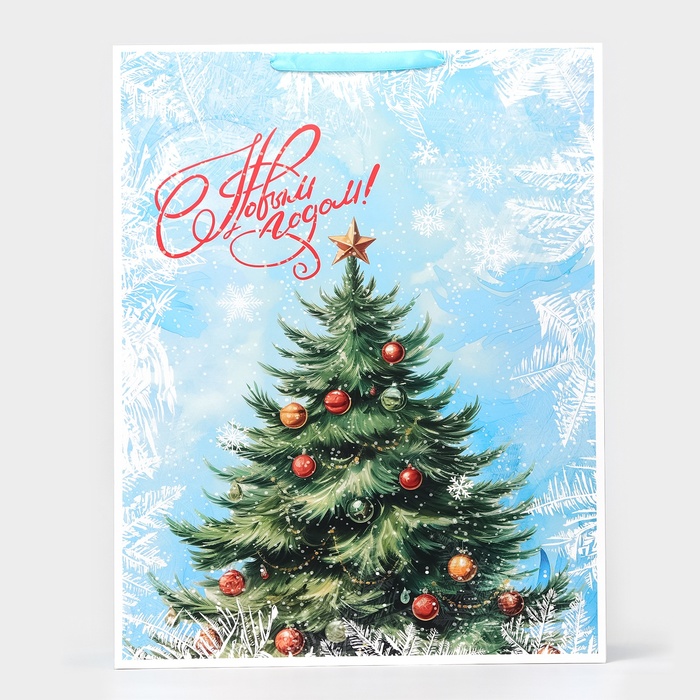 Пакет ламинированный новогодний вертикальный размером XXL 61 х 46 х 20 см — идеальный выбор для упаковки новогодних подарков!