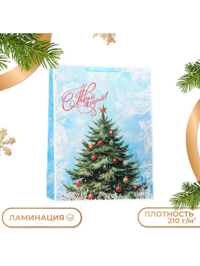 Пакет ламинированный новогодний вертикальный размером XXL 61 х 46 х 20 см — идеальный выбор для упаковки новогодних подарков!