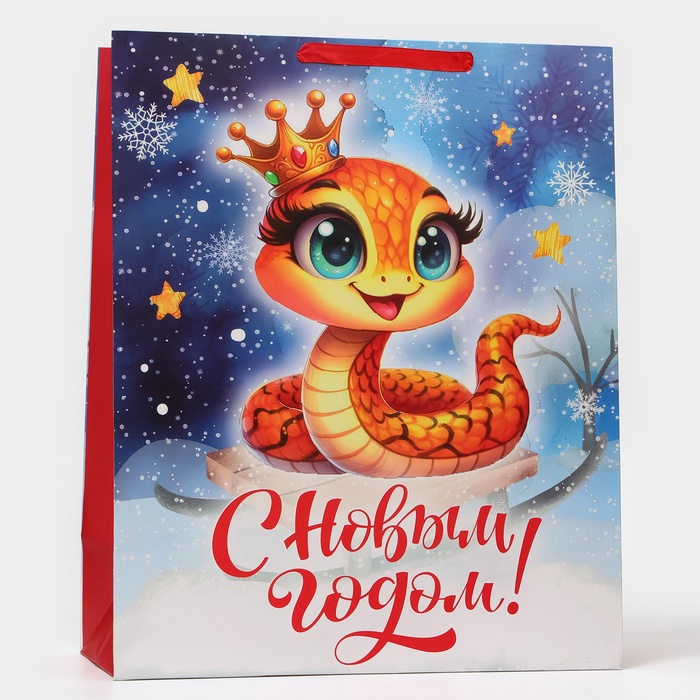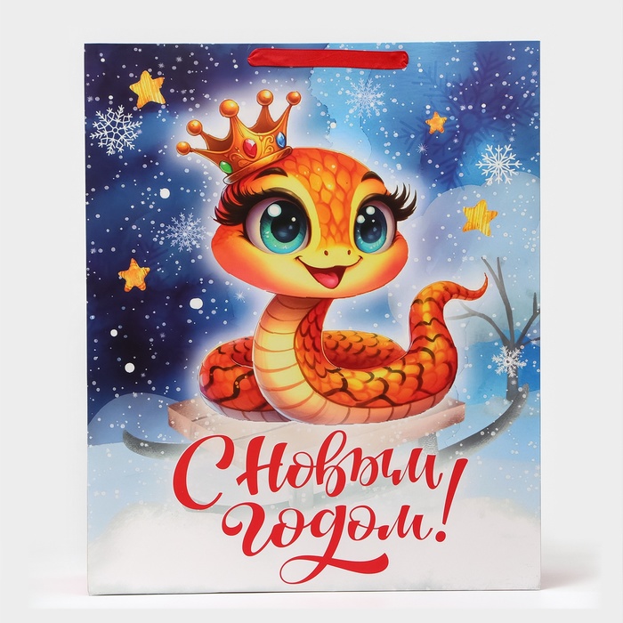 Пакет ламинированный новогодний подарочный вертикальный "Змейка - принцесса Символ года", XL 40×49×19 см — Характеристики