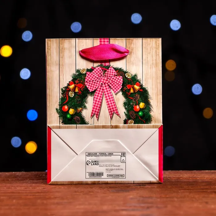 Пакет ламинированный «Новогодний венок» 11.5×14.5×6 см — Характеристики