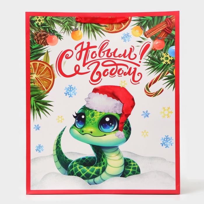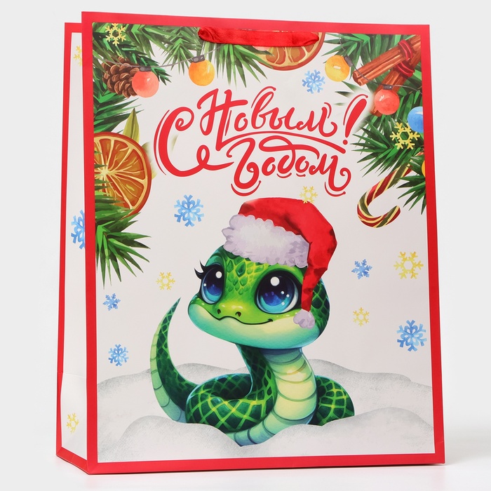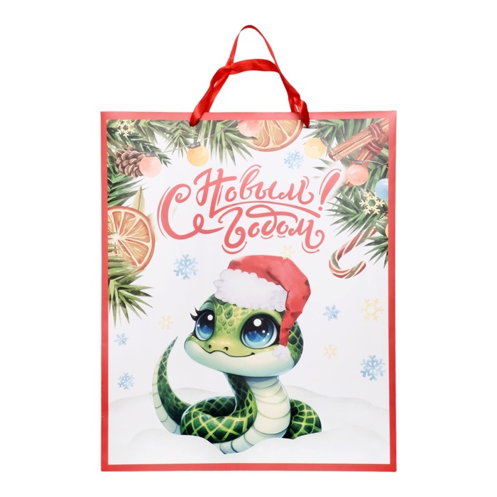 Пакет ламинированный новогожний подарочный вертикальный «Змейка Символ года», XL 40×49×19 см — Характеристики