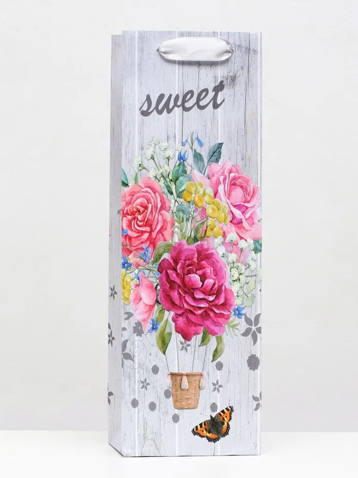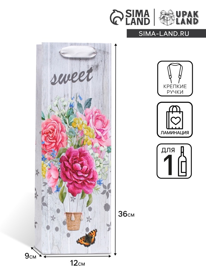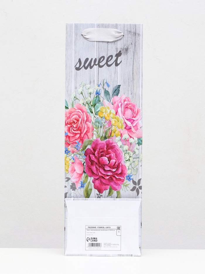 Пакет ламинированный под бутылку «Букет цветов» 12×36×9 — Характеристики