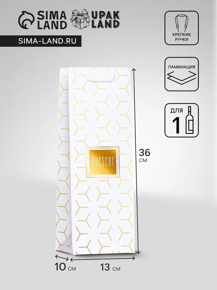 Пакет ламинированный под бутылку «Ромбики»,13×36×10 см — Характеристики