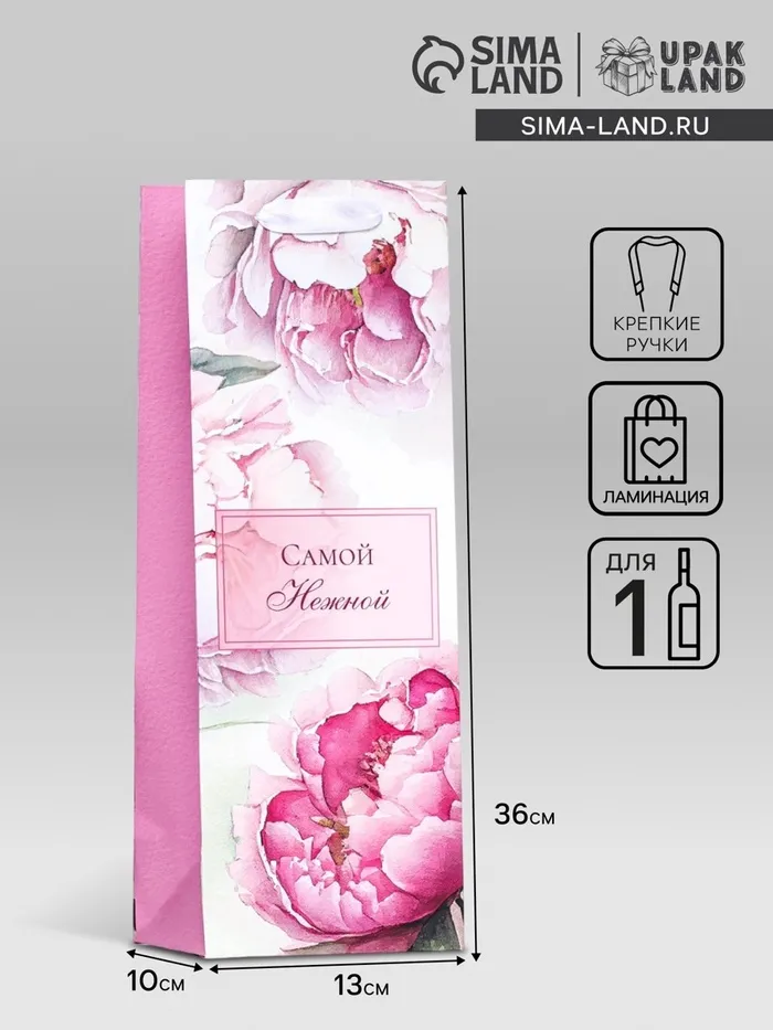 Пакет ламинированный под бутылку «Самой нежной»,13×36×10 см — Характеристики