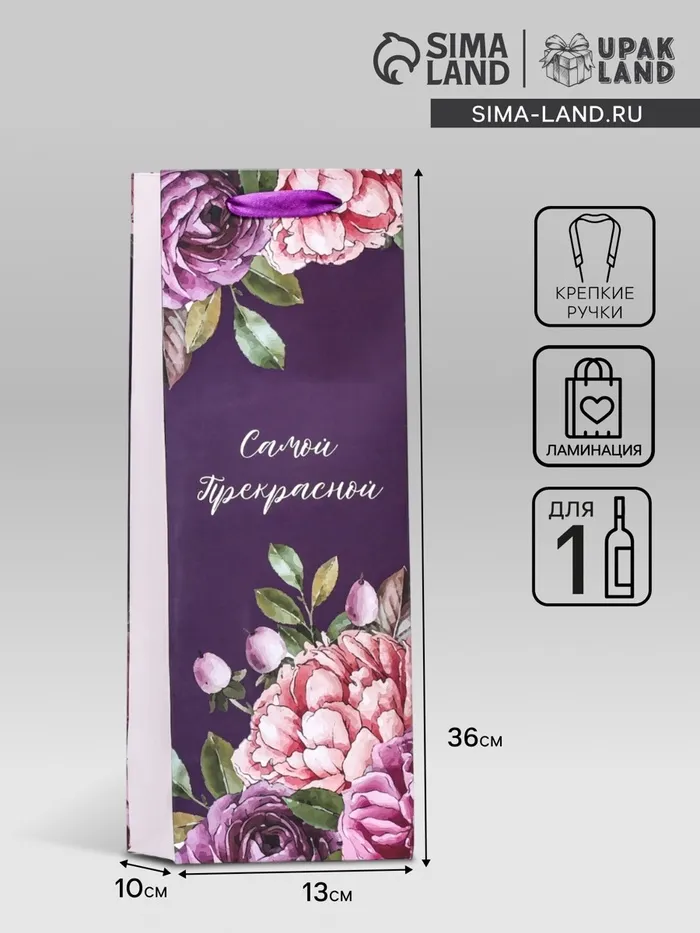 Пакет ламинированный под бутылку «Самой прекрасной»,13×36×10 см — Характеристики