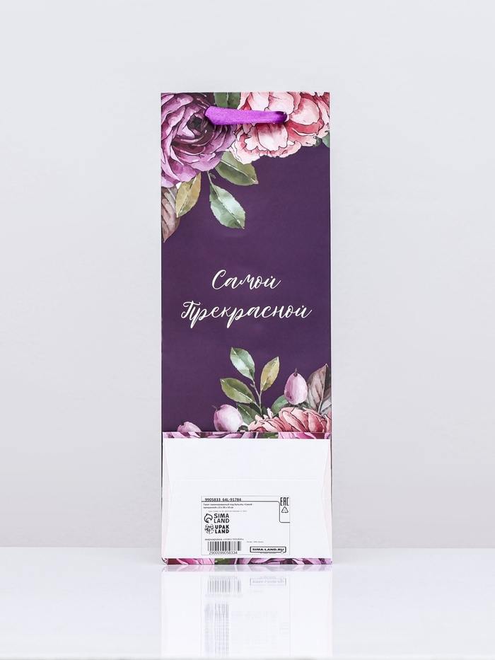 Пакет ламинированный под бутылку «Самой прекрасной»,13×36×10 см — Характеристики