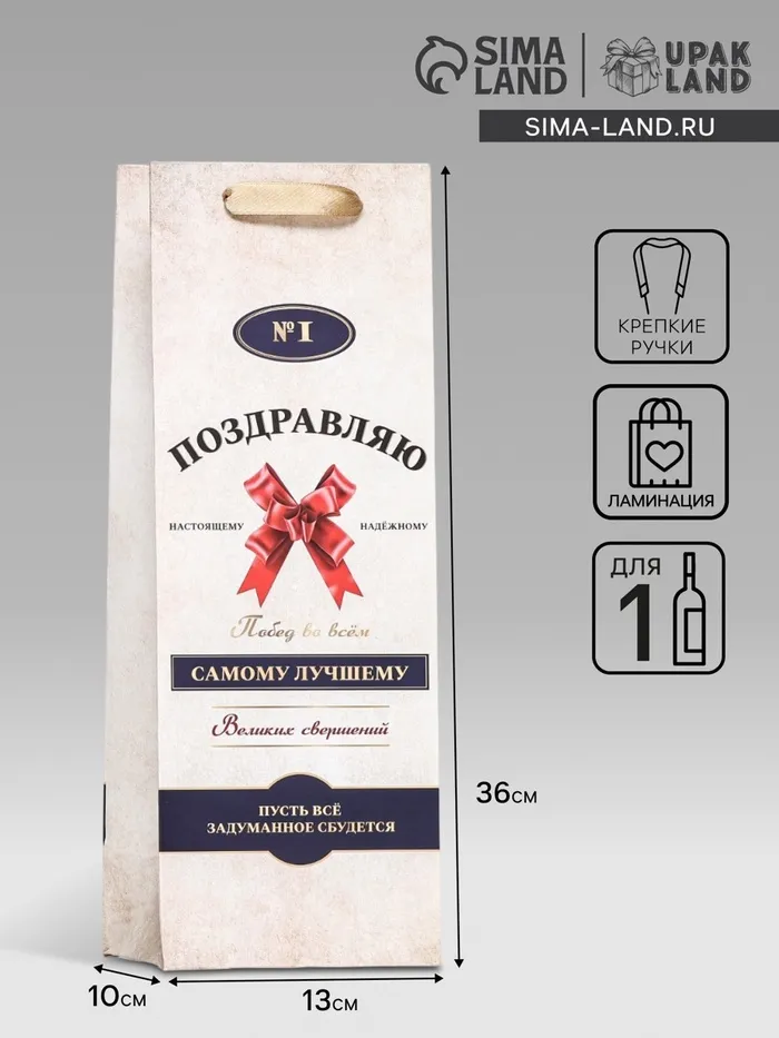 Пакет ламинированный под бутылку «Самому лучшему!»,13×36×10 см — Характеристики