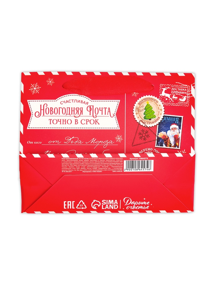 Пакет ламинированный подарочный «С Новым годом», S 12×15×5.5 см — Характеристики