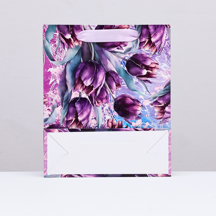 Пакет ламинированный подарочный вертикальный «Романтичные тюльпаны», 23×18×10 см — Характеристики