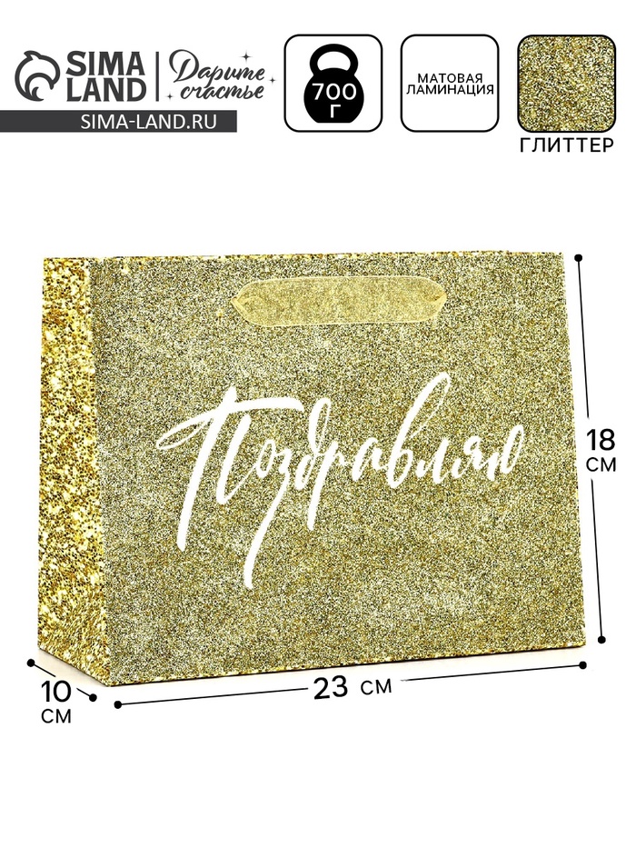 Пакет ламинированный «Поздравляю», глиттер, MS 23 х 18 х 10 см — Характеристики