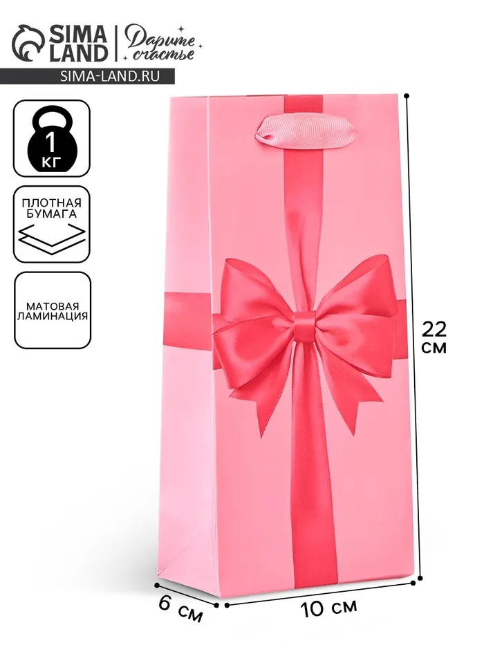 Пакет ламинированный «Розовый бант», 10 х 22 х 6 см — Характеристики