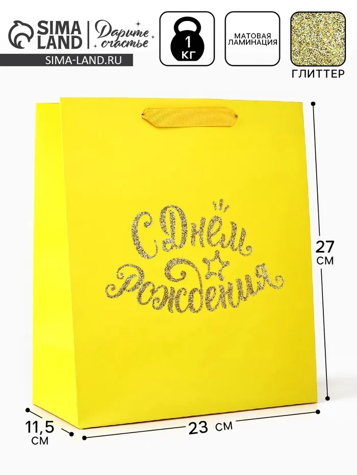 Пакет ламинированный «С Днём рождения», глиттер, ML 23 х 27 х 11.5 см — Характеристики