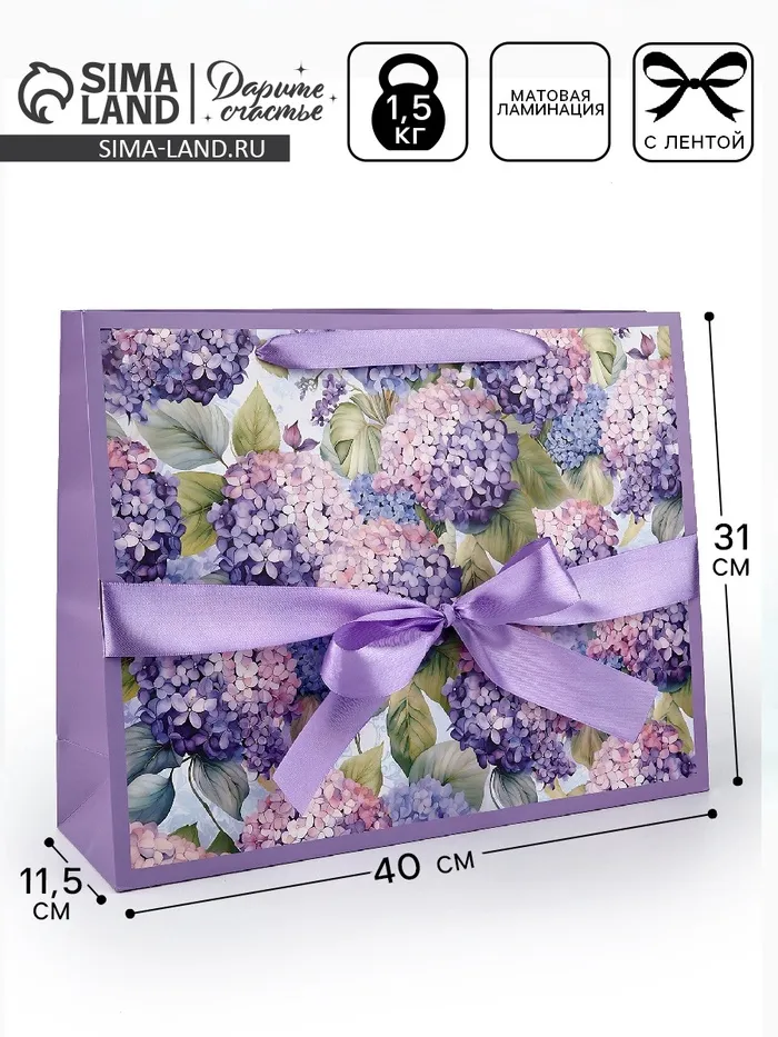 Пакет ламинированный с лентой «Цветы», L 40 х 11.5 х 31 см — Характеристики