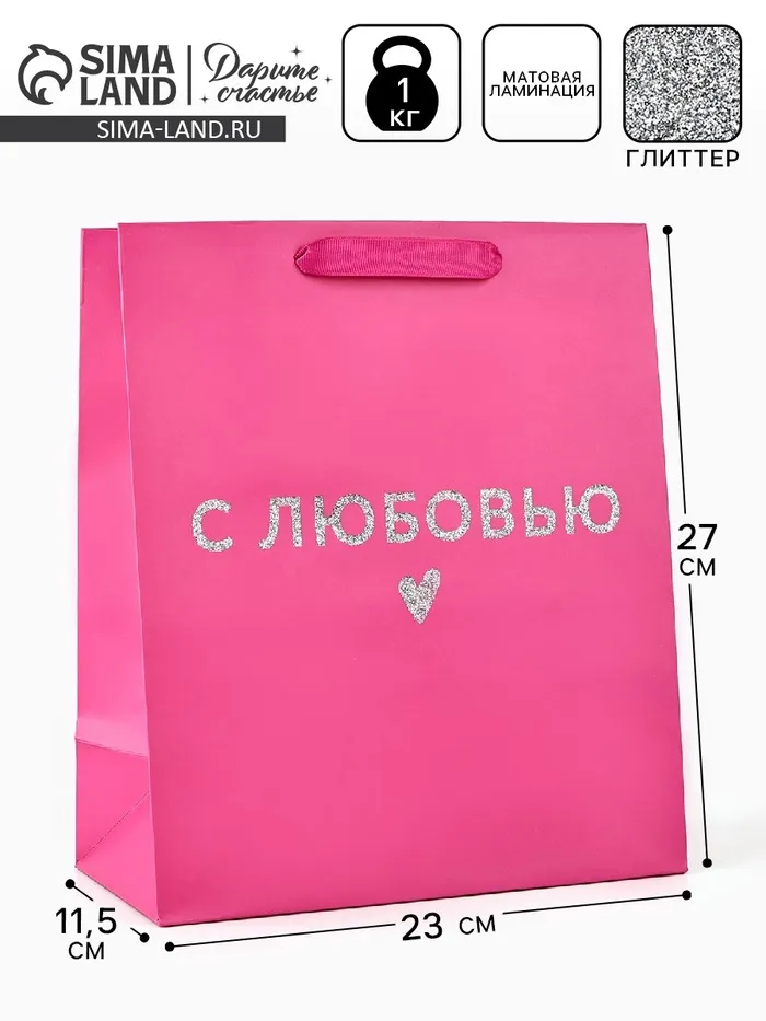 Пакет ламинированный «С любовью», глиттер, ML 23 х 27 х 11.5 см — Характеристики